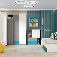 Модульная детская Клео (ЛДСП графит-миндаль-океан)