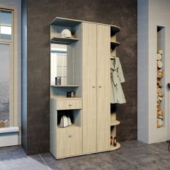 Это прихожая, которая при своих небольших размерах достаточно функциональна. Она состоит из отделений для верхней одежды, двух ящиков для обуви, а также трез полок для различных мелочей. Так же прихожая оснащена небольшим зеркалом. Выпускается прихожая в цвете: дуб сонома/ваниль.